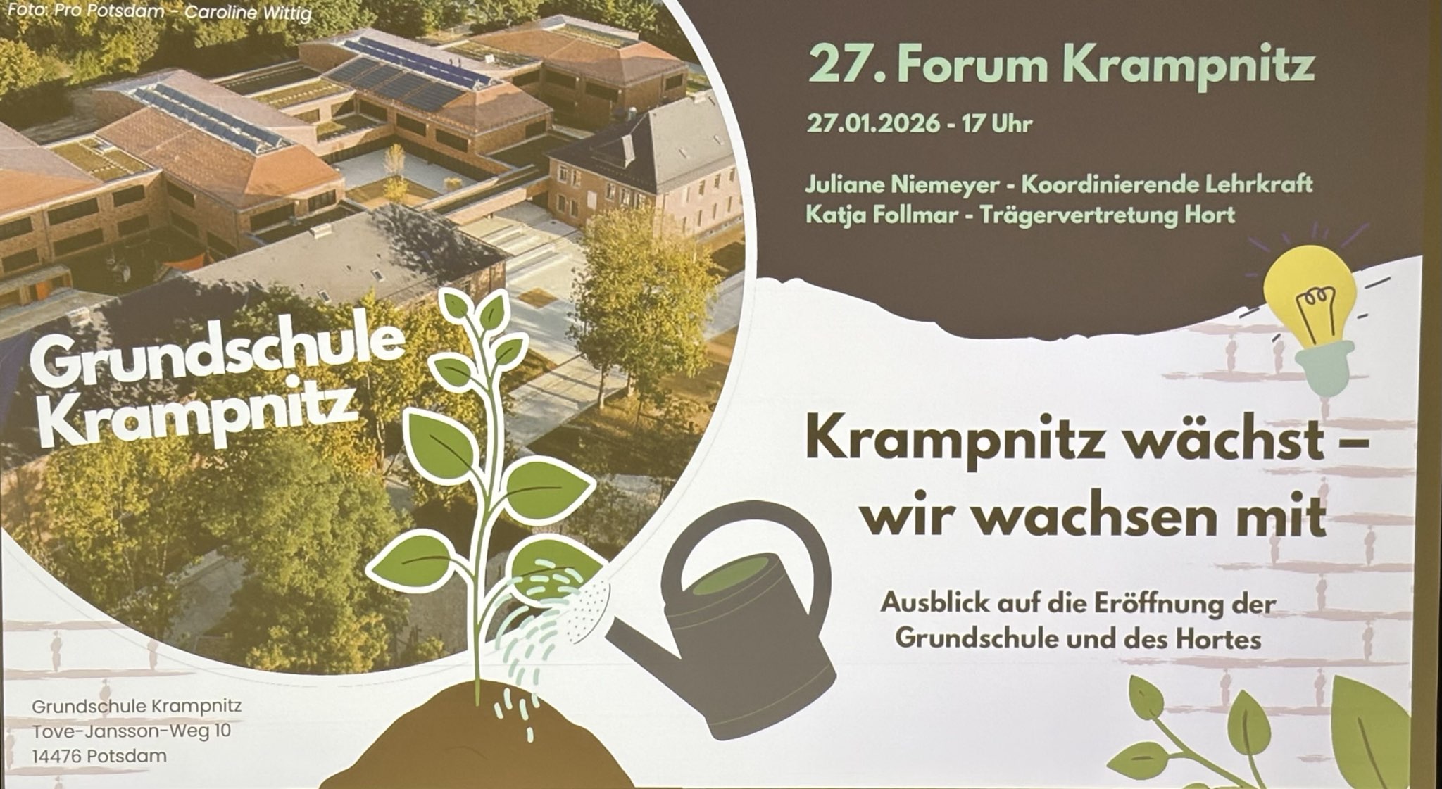 Die Schulentwicklungsplanung wurde von Hr. Werner (Bereichsleitung Bildungsplanung Landeshauptstadt Potsdam) vorgestellt. Darin ging es z. B. um die Grundschule mit Hort ab nächstem Schuljahr.