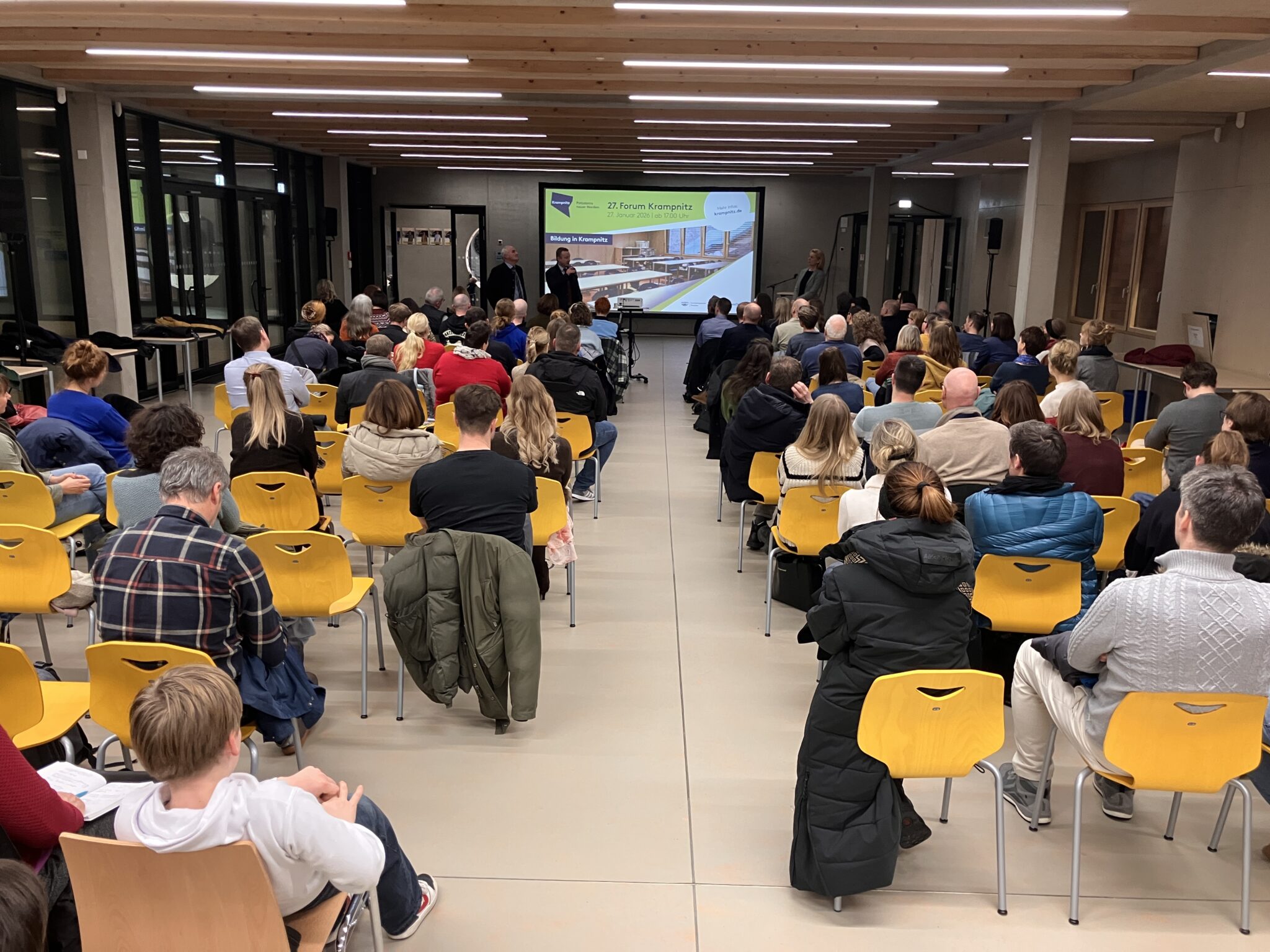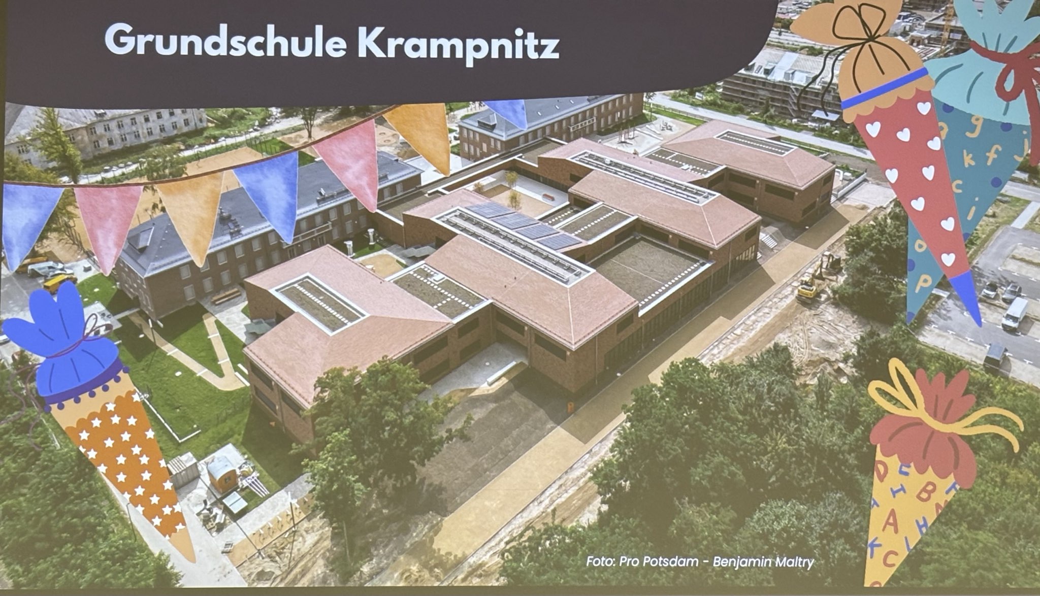 Durch das verantwortliche Architekturteam wurde das Projekt Gesamtschule Krampnitz West (zukünftiges Zuhause der Schule am Schloss) vorgestellt in der Schwedischen Allee. Dort wird nicht nur Platz zum Lernen geschaffen, sondern auch für Vereinssport und einen Jugendclub. Die Planung ist abgeschlossen, Baugenehmigung ist erteilt. Voraussichtlich ab 2028 ist eine Teilnutzung möglich, in 2029 sollen die Arbeiten abgeschlossen sein.